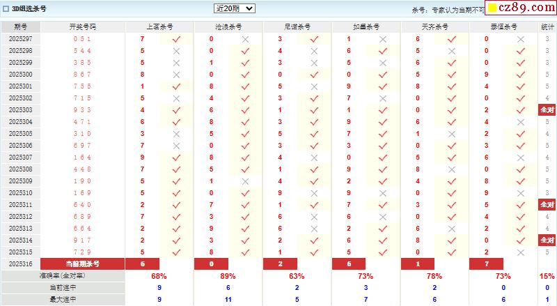 25年316期澳客专家福彩3D杀号定码推荐